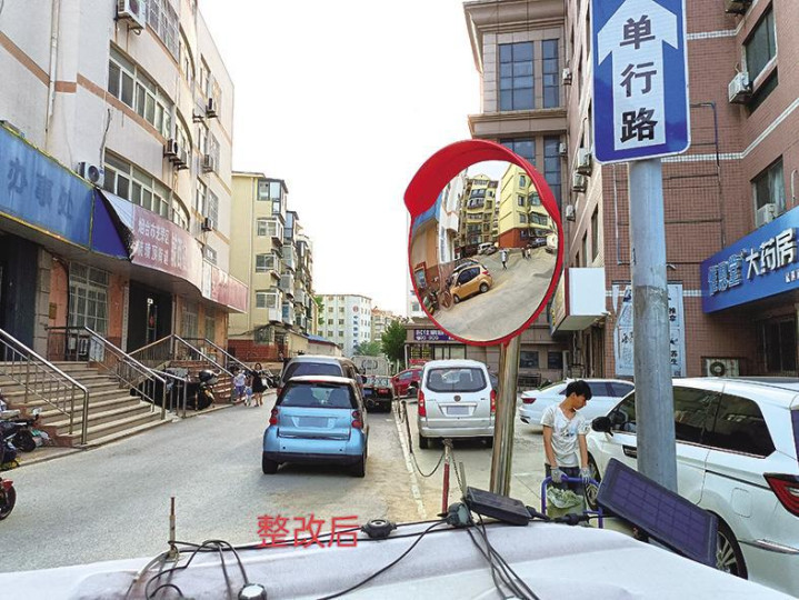 7月8日,记者再次来到芝罘区名仕豪庭楼座南门人行道处回访,看到此前破碎的广角镜已经换新,承载广角镜的铁杆也被扶正了。广角镜所在路段,是一条“单行路”,连接毓璜顶北路和毓璜顶西路,两侧是大型居民区,车流量很大,易拥堵。记者注意到,该广角镜换新后,扩大了司机视野,司机能及早发现其他车辆,以减少交通事故的发生,也让行人能够看到交通死角,及时规避交通安全风险。新的广角镜对于防事故、保畅通,起到十分重要的作用。